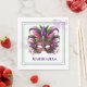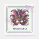 This paper napkin is shown in a festive Mardi Gras mask celebration print.