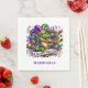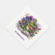 This paper napkin is shown in a festive Mardi Gras celebration print.