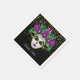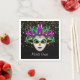 This standard cocktail size paper napkin is shown with a festive Mardi Gras carnival mask print on a black background color.