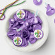 • Sparkly purple, green, and gold fleur de lis design on the labels