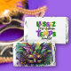 • Vibrant Mardi Gras mask design on the front, with "Laissez les bon Temps Rouler" greeting on the back