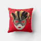 This throw Pillow is shown in red with a festive Mardi Gras mask print.