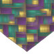 This table runner is shown with a Mardi Gras pattern print.