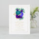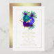 Mardi gras-themed quinceanera invite designed to be quickly and easily customized to your event specifics. Please note that the leaves on the front and the graphic on the reverse are simulated foil.