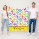 This Mardi Gras fleece blanket features a pattern of watercolor rainbow fleur de lis on a white background. Along the bottom edge is a yellow stripe with the word Mardi Gras in black typography which may be left as is or personalize. Designed by world renowned artist ©Tim Coffey.