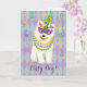 Cute Samoyed puppy, dressed in festive feather mask and beads, ready for fun on Mardi Gras or at any other time. Great gift for yourself and your Sammie-loving family and friends.