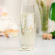This etched glass champagne flute is shown with a festive Madri Gras mask print design.