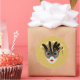 This large size round sticker is shown in a festive Mardi Gras celebration mask print design.