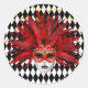 This large size round sticker is shown in a festive Mardi Gras celebration mask print design.