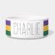 This Pet Bowl celebrates a little New Orleans with Mardi Gras Stripes. Super cute Mardi Gras themed customizable pet bowl for your dog or cat.