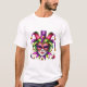 Perfect to wear to your Mardi gras parties, this men's and women's t-shirt is shown with a jester mask print.