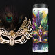 The Mardi Gras Thermal Tumbler is a stylish and unique tumbler that features a feathered purple, green, and gold mask design in gorgeous watercolors. This tumbler is designed to be as unique as your drink preference, allowing you to enjoy your favorite beverages in style.