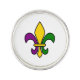 Design with seamless pattern with fleur-de-lys (lilly flowers) in the colours of New Orleans Mardi Gras; purple, golden and green design on white background