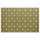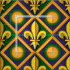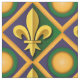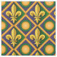 Fabric with a seamless pattern with fleur-de-lis (lily flowers) in the colors of New Orleans Mardi Gras; purple, golden, and green design