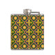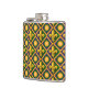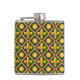 A flask with a seamless pattern with fleur-de-lis (lily flowers) in the colors of New Orleans Mardi Gras; purple, golden, and green design