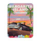 Venezuela, Margarita Island vintage style travel poster of beautiful old classic auto on the beach.