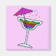 A brightly colored margarita glass filled with a wavy rainbow of tequila cocktail fun, bubbling stars and topped with a hot pink, magenta cocktail umbrella. Perfect for any party or happy hour celebration, Bachelor or Bachelorette Parties or any cocktail party.