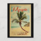 A uniquely retro mid-century modern Margate Florida art print in vintage travel poster style. It features a curved palm tree on sandy beach with ocean under a blue cloudy sky.