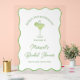 Welcome guests to your bridal shower with this playful “Margs and Matrimony” sign, perfect for a fun-loving fiesta or tequila-themed celebration. Featuring a hand-drawn margarita glass, wavy border, and zesty lime green accents, this editable welcome sign sets the tone for a party that’s equal parts chic and cheeky.