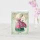 A delightful rococo fashion plate representing Marie Antoinette. She is looking very pretty with a butterfly and a bird. Perfect for a note to a special friend or for birthday or thank you card.