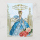 Romantic Marie Antoinette in her beautiful gown with a peacock in her hair .This lovely design is suitable for Invitations and Gifts. マリーアントワネットのポストカード、ヴェルサイユブルー絵葉書ブルー