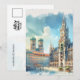 This postcard features a watercolor portrait of Marienplatz in Munich, Germany.