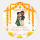 Marigold garlands bells with Tamil Telugu wedding Classic Round Sticker