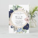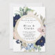 Design features a printed colored floral element in shades of navy and blush pink watercolor florals wreath with nautical rope and starfish. Calligraphy or type writing with the design artwork. Mix and match collection piece. Great for your wedding celebrations!