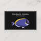 Marine biologist business card template with image of a Powder Blue Tang fish and text layout you can customize online. Designed for business card themes related to marine biology, biologist, tropical fish, aquarium maintenance, installation, and aquarium services.