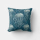 Marine Blue and White Jelly Fish Pattern Throw Pillow