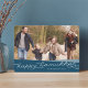 Share Hanukkah greetings with friends and family with our elegant and modern Hanukkah photo card, featuring your favorite photo with overlapping bands of deep marine blue and "Happy Hanukkah" in modern handwritten style typography. Personalize with your family name or custom greeting.