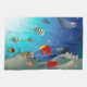 This colorful marine life scene features a large variety of saltwater creatures like Garibaldi fish, stingray, angelfish, sergeant major, corals, and jellyfish.