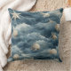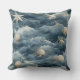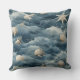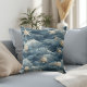 'Marine Shell and Starfish Ocean Waves' inspired throw pillow in muted blue tones and soft cream for Beach House home decor. Rooted in serenity, balance, and natural elegance, coastal decor brings the peaceful essence of the ocean into everyday spaces. Center text contains name with modern typography that can be personalized or removed.