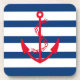 Coaster set shown in navy blue, red and white stripes with a maritime anchor symbol.