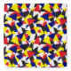 Colourful bandana featuring a geometric pattern of nautical maritime flags. The flag colours reflect the standard range used in naval navigation of red, white, yellow, black and blue.