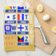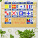Nautical Sign Code Flags Kitchen Towel. Nautical signal flags A (Alfa) to Z (Zulu) and fully customizable texts "Fair winds & following seas" (nautical saying for good voyage) and personalizable side texts "International Nautical Signal Code Flags" nautical towel. A beautiful sail gift for a boat captain, marine watersports fans and yacht people.