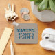 Modern keychain design with features latitude and longitude coordinates for Mariupol, Ukraine in distressed dark blue font on taupe background