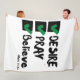 This fleece blanket design is based on the Mark 11:24 bible scripture displaying the word "Desire, Pray, Believe" a paint brush stlye print font with black letters and green and black checklist plus bible citation in this KJV faith based quote theme. This Blanket is made from 100% buttery soft and cozy polyester fleece with edge-to-edge vibrant full color sublimation printing and double edge stitching with a off-white colored back machine washable.