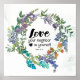 Inspirational scripture poster depicts a pretty colorful watercolor wreath with wild meadow flowers in shades of purple, blue and orange and greenery. It features Bible Verse Mark 12:31, "Love your neighbor as yourself."