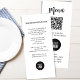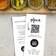 This design features a marketing, brochures rack card, with service and menus with a trendy simple minimalist style, a scannable QR code template, perfect for restaurants and catering businesses