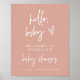 This modern baby shower welcome sign features an edgy handwritten font with a bohemian blush and white color combination. Its simple design is the perfect baby shower invitation for the modern boho mom.
