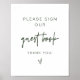 This "please sign our guestbook" sign features an edgy handwritten font with a forest green and white color combination. Its simple design is the perfect baby shower sign for the modern mom.. All colors are editable to match your theme!