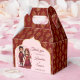 Maroon and gold cute Indian bridal couple whimsical cartoon charicature Hindu wedding personalized printed favor box, Indian door arch frame pastel pink background maroon and gold flower border favor box Hindu wedding favors