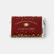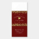 This modern design features a graduation hat and confetti in gold on a background of maroon with white text.