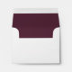 White all purpose note card size envelope, with a rich maroon color, on the inside. Dark gray text return address on the back is fully customizable and ready to personalize with your information. Lovely finishing touch to your note cards or thank you cards.