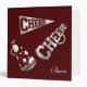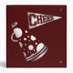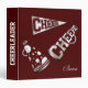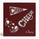 Pretty cheerleader's binder, done in maroon, white, and silver tone accents. Lovely graphics of a cheerleaders megaphones and banner decorates the front and back of the binder. Graphics text on front and back, reads Cheer, and CHEERLEADER, on the spine. White script custom text, on the front, of the binder is fully customizable to read what you want. Great for school work or at home for photos and makes an excellent gift idea for your favorite Spirit Leader.