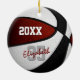 This basketball ornament features the realistic image of a basketball that has alternating maroon, white and black recolored panels - personalize the front and back of ornament with year and player's name in an "autograph" style font overlying the athlete's jersey number - by katz_d_zynes