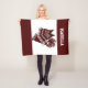 Stay warm on the side lines with this cheerleader themed fleece blanket done in maroon and white, with graphics of a cheerleader's dress, megaphone, and pom poms, in the middle. Personalize the white name for your favorite cheerleader.