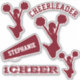 Cheerleader themed sticker set sheet done in maroon and white, with silhouettes of cheerleaders, megaphone and graphic text. Personalize the name, on the megaphone, to read what you want.