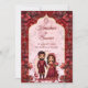 Maroon cute Indian wedding bridal couple cartoon Invitation